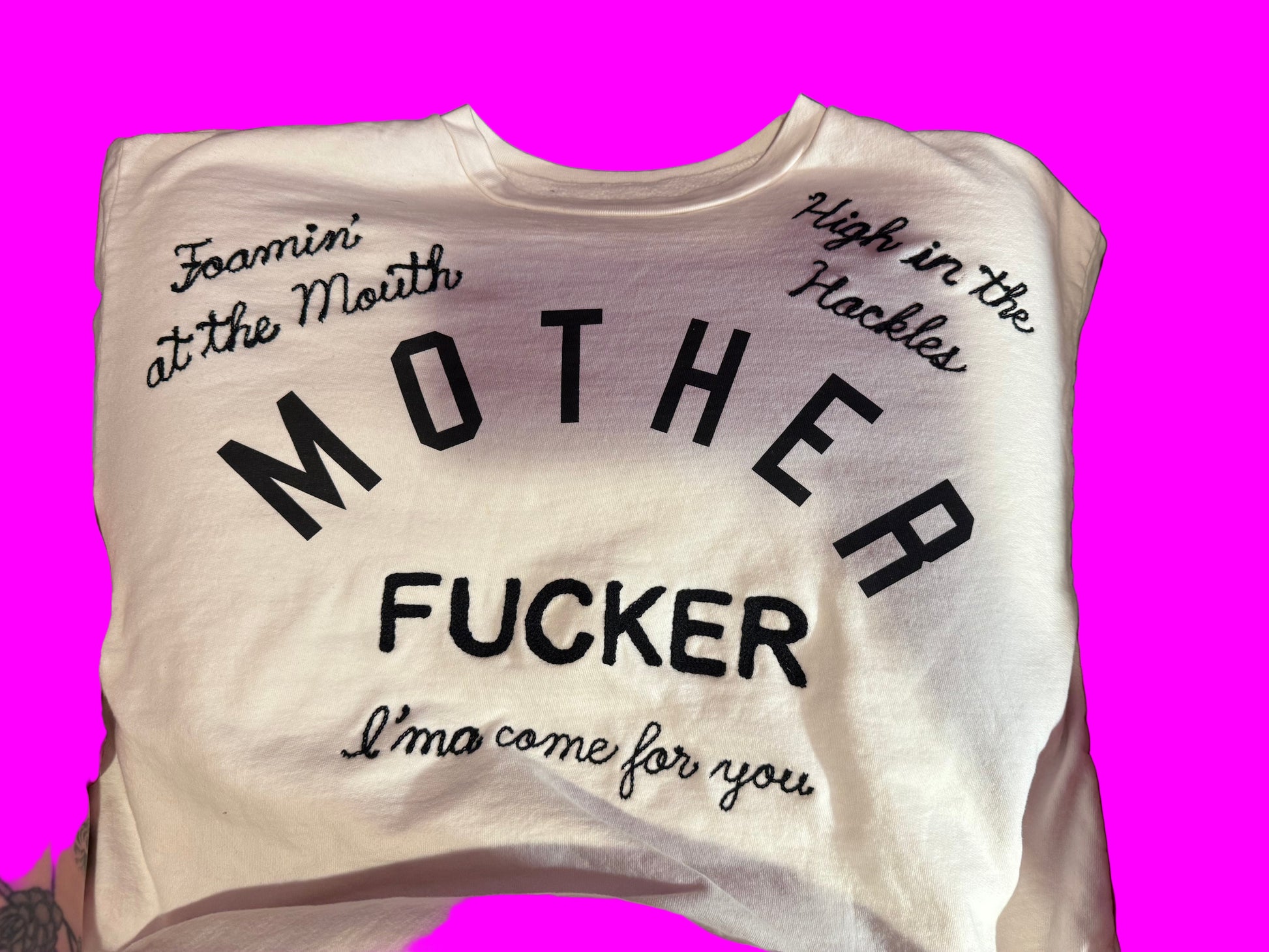 "Bitin List" White Mother Screenprinted + Stitched Crewneck Sweatshirt