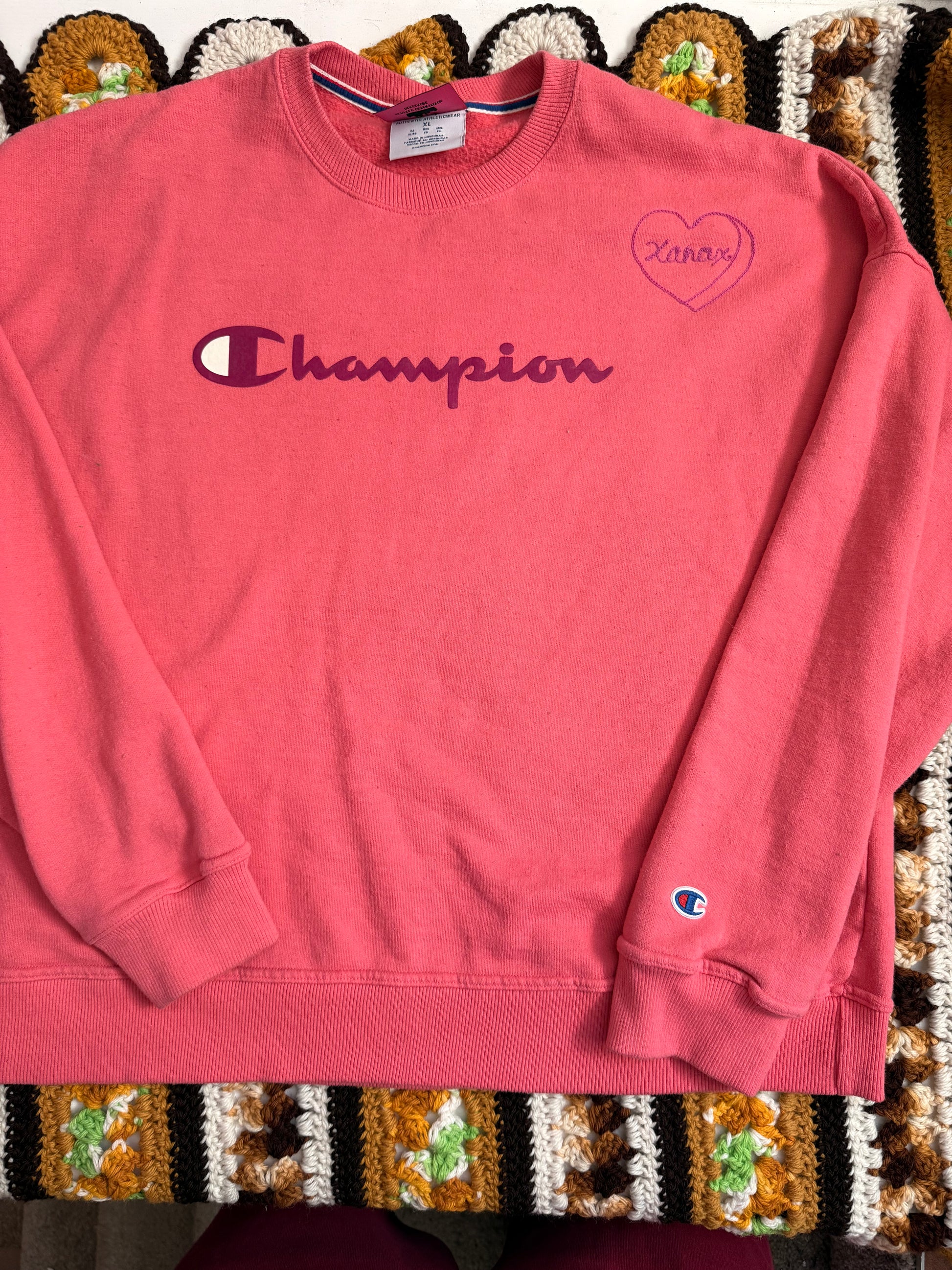 I <3 Xanax Coral Pink + Purple Champion Crewneck - XL