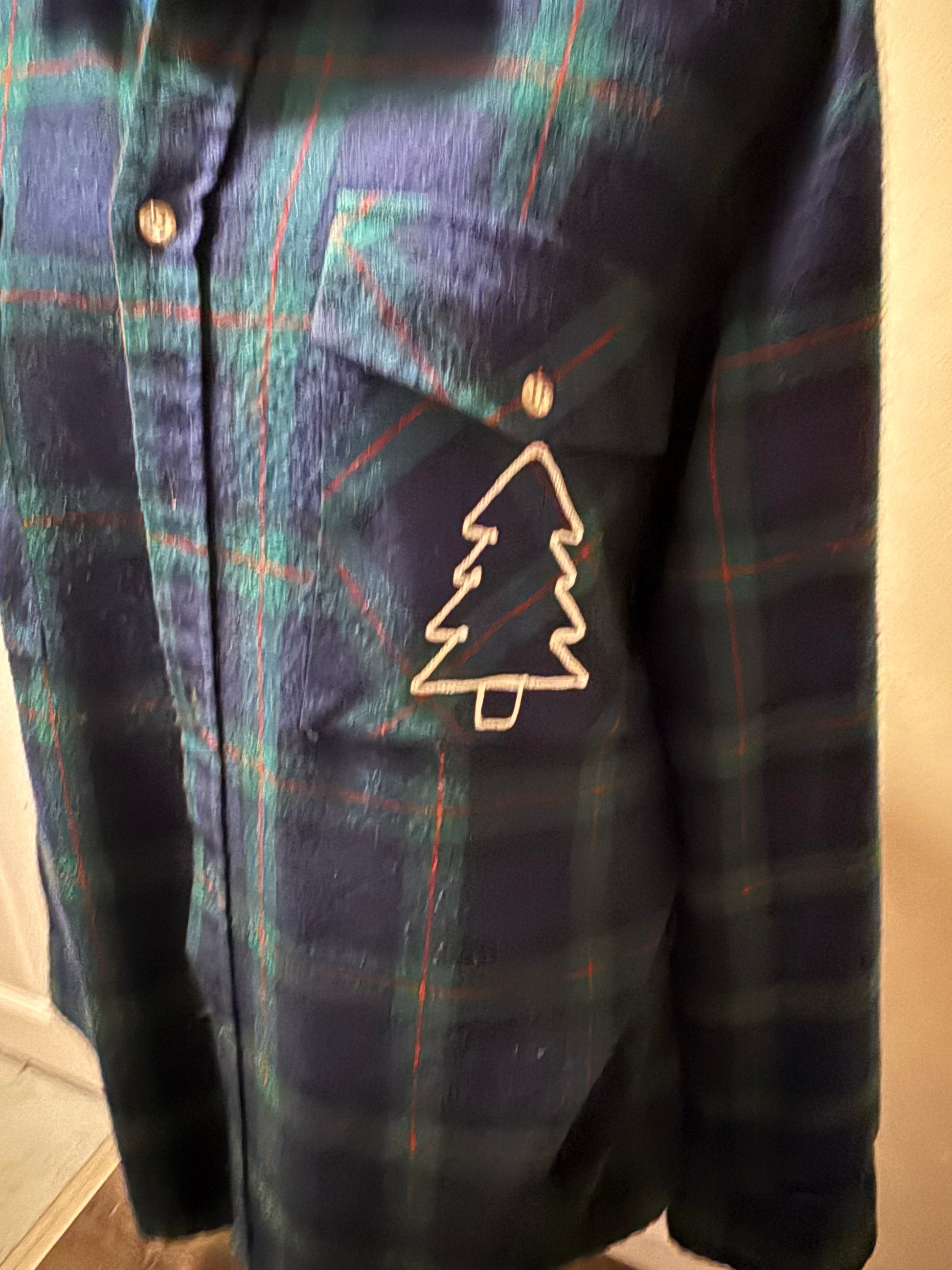 Features: Soft wool tartan plaid button-up shirt with - you guessed it - two pines, just where they should be...over the pockets!