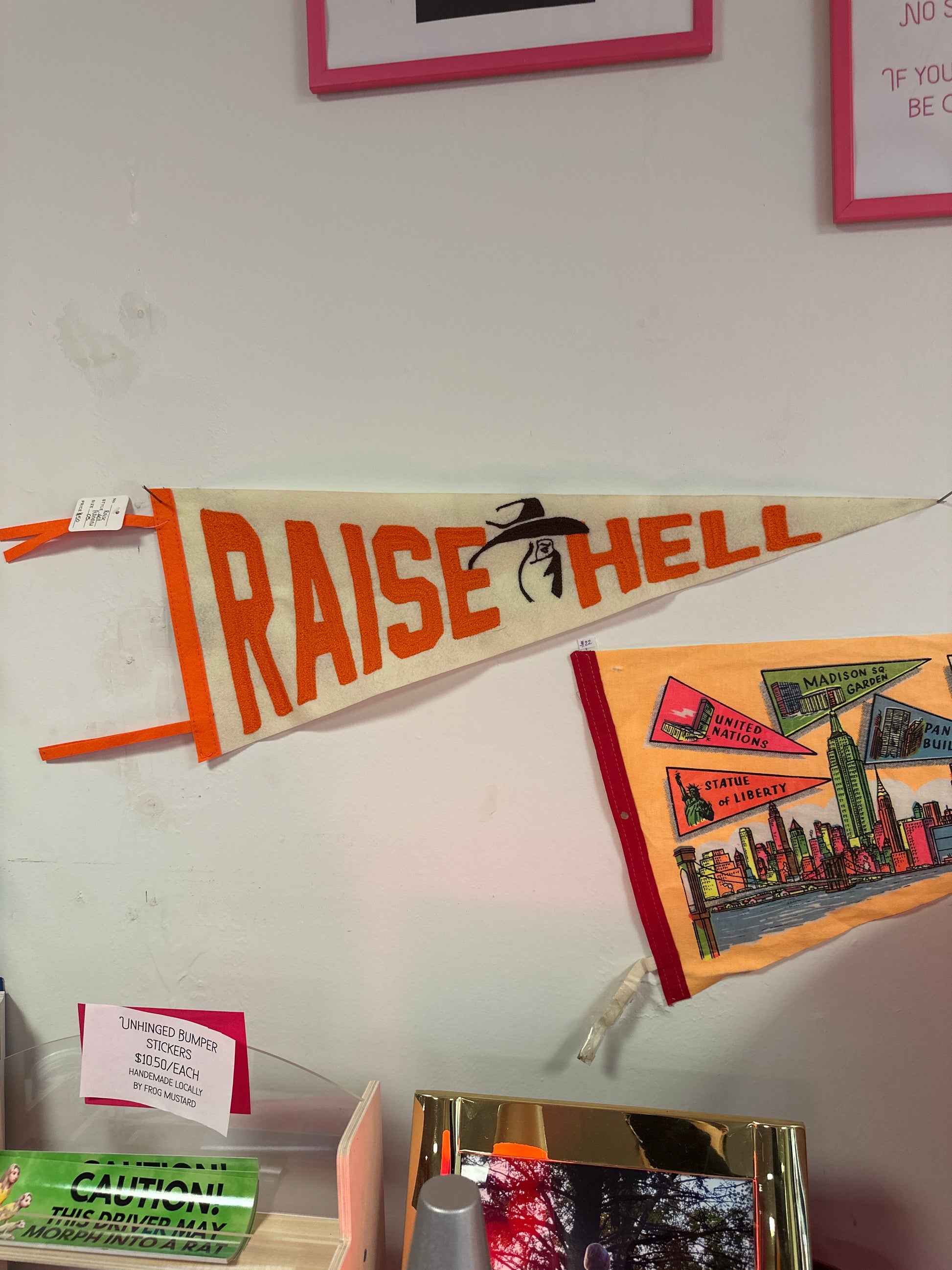 "Raise Hell" Bandit Orange + Cream Large Pennant