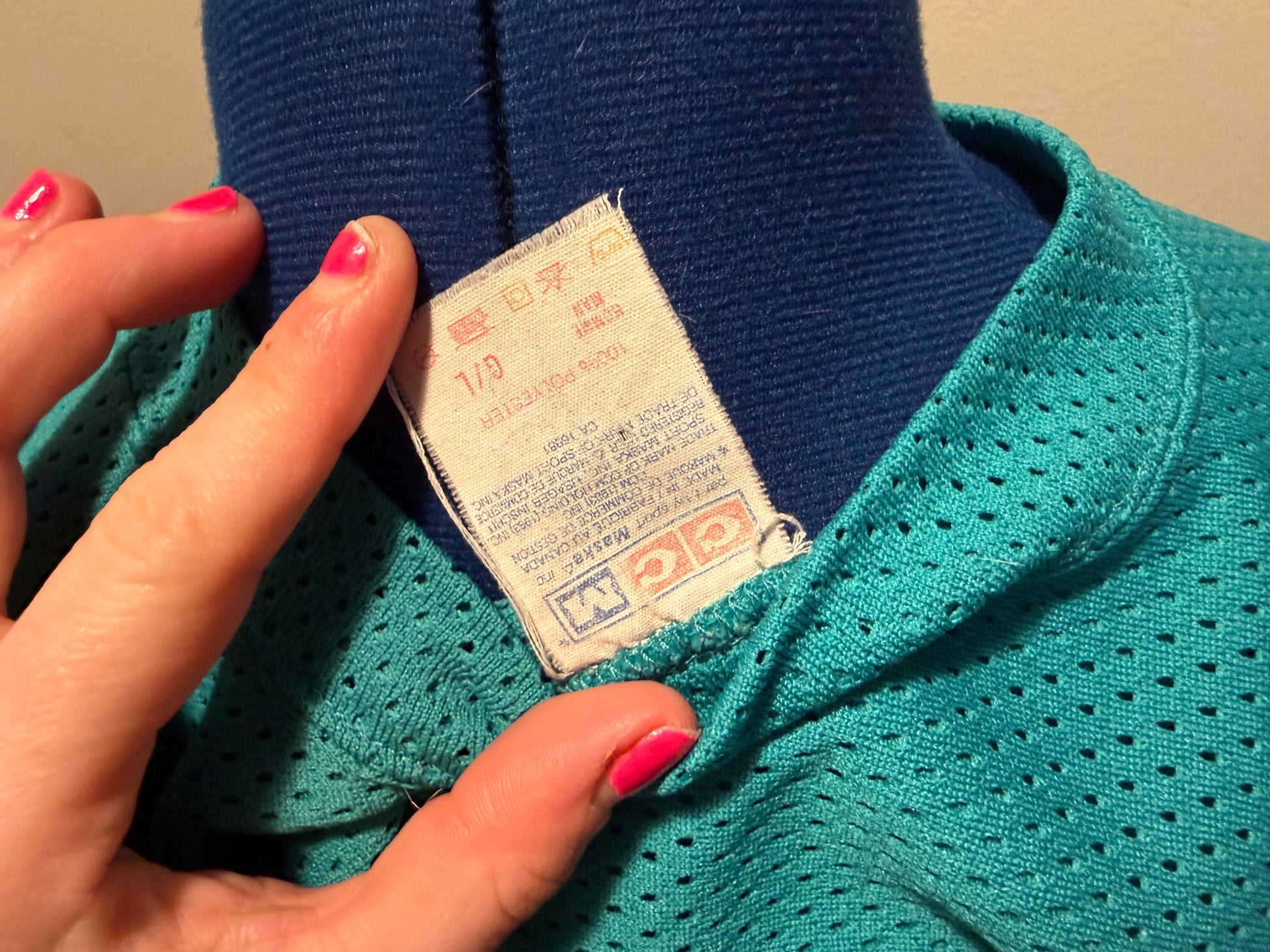 Features: You asked for it, here it is. Do you love the gay hockey show and you're also gay? Tell everyone with this 80s-coded teal, purple, white vintage CCM (meaning it was really used for hockey) jersey.